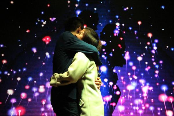 本次活动面向西安各高校,经过前期宣传报名、面试及见面会等环节,最终遴选出8位男嘉宾和9位女嘉宾进行登台展示。活动在研究生艺术团青春洋溢的开场舞中拉开了帷幕。伴随着同学们的欢呼声,九位女嘉宾隆重登场。随后阳光帅气的男嘉宾依次登台,通过VCR介绍与男女嘉宾互动,向台上心动女生展开追求。一号男嘉宾肖应超风趣幽默的语言活跃了全场的气氛;三号男嘉宾尹恒毅凭借足球这一爱好成功牵手六号女嘉宾柳剑男;五号男嘉宾赵良波出人意料的与台下观看活动的女生牵手成功;六号男嘉宾李杰赢得四号女嘉宾贾春艳的青睐,亮灯并深情告白,最终成功牵手。