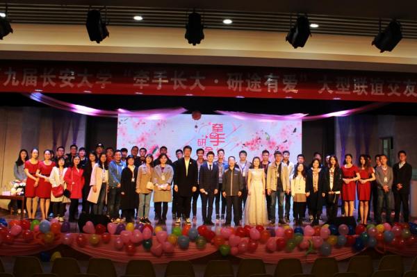 为丰富学校研究生校园文化生活,加强西安各高校之间的交流和沟通,2017年11月11日晚,由校团委主办、长安大学研究生会承办的第九届“牵手长大·研途有爱”研究生联谊交友活动在长安大学研究生文化艺术活动中心举行。