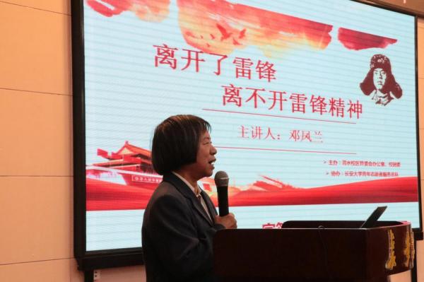 邓凤兰以《离开了雷锋离不开雷锋精神》为题详细讲述了雷锋同志平凡而伟大的一生,并以自身为例,分享了她在工作、学习、生活等方面学雷锋、实践雷锋精神的经历和感受,朴实的例子让同学们深切的体会到了“雷锋精神”的内涵,更加坚定了践行“雷锋精神”的决心。