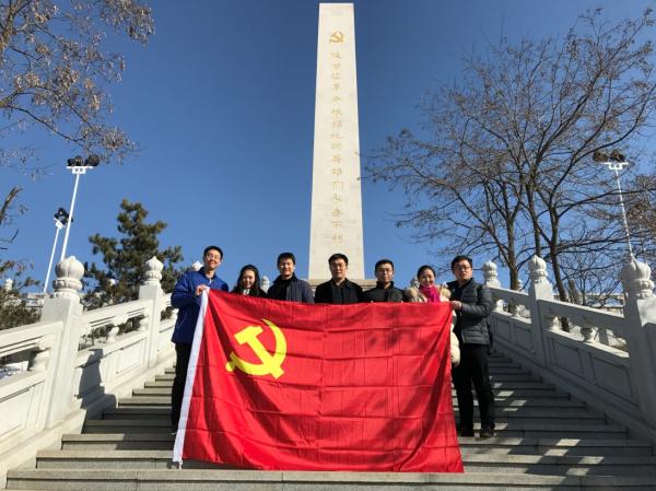 党支部成员于陕甘边革命根据地纪念碑下合影