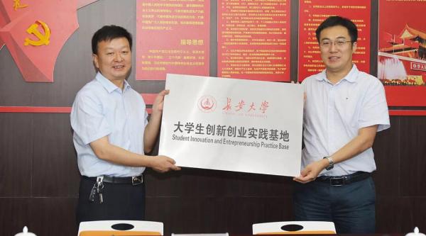 校团委书记张永代表与延安高新区创业中心主任苏醒共同为“长安大学大学生创新创业实践基地”揭牌。我校学生创办的西安微米防灾科技有限公司、西安北斗众联信息有限公司、西安鑫瑞环资科技有限公司与延安市高新区创业服务中心签署入驻协议。
