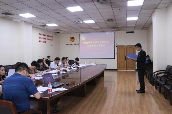 6月14日下午,2018年校级学生组织换届主席候选人答辩会在长安文化艺术中心一楼会议室举办。校团委书记张永、学工部副部长李小芹、保卫处副处长王恩成、渭水校区办行政科科长栾义峰以及各校级学生组织秘书长参加了本次答辩会并担任评委。答辩会由校团委副书记李阳主持。