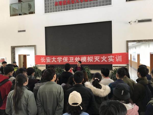 为切实加强学生活动阵地的安全管理和建设,培养对火灾的险情处置能力,提高学生的消防意识,11月21日中午,在长安文化艺术中心进行了模拟消防灭火现场实训,此次消防培训特邀保卫处王永平老师作为主讲人,校团委副书记姬国斌、赵丹、李阳出席,校团委全体干部、各校级学生组织干部代表、长安文化艺术中心全体工作人员等60余人参加此次实训。