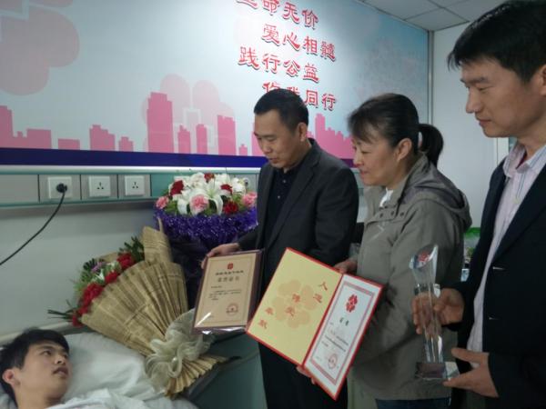 2019年3月21日,我院2016级吴俊毅同学在陕西省西安市唐都医院捐献造血干细胞,挽救一名白血病患者,点燃生命的希望。本次采集于早上八点开始,持续五个小时,采集成功的造血干细胞已通过飞机运往白血病患者所在医院。校团委副书记赵丹、机械学院党委副书记赵武刚到场慰问,并与陕西省红十字会共同为吴俊毅颁发了“爱心使者”、“捐献造血干细胞”荣誉证书。参与新闻发布会的还有机械学院学办主任谢静老师、2016级辅导员陈朔老师、2017级辅导员赵尉尉老师。