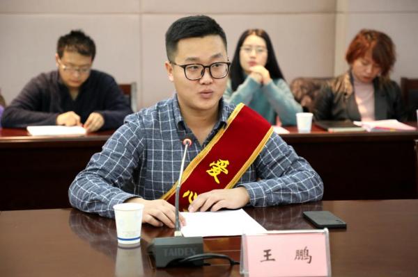 王鹏同学发言称,留下是因为对这片土地的热爱。2014年10月25日,签订的“中华骨髓库《志愿捐献者同意书》”,并采集了血样,正式成为中华骨髓库中的一名志愿者。大学毕业后,可以说是对陕西这片土地的热爱吧,我放弃了我们家本地提供的工作机会,把工作定在了宝鸡。2018年10月11日,我接到省红十字会的电话,告知我初配通过了,问我是否还愿意进行高配以后高配通过后的捐献活动。当想到自己的造血干细胞能够挽救一条生命的时候,我的心情很激动,同意了后续的相关事项。在省红十字会和宝鸡市红十字会工作人员的帮助下,进行了高配血样的采集。经过一个月的等待,得到了我高配通过的通知,并且后续进行的体检也通过了。我向家人说明了情况,家人很支持我来进行捐献。我向单位汇报了情况,单位对这件事情也很支持,批准了我来西安进行造血干细胞的采集。很感谢家人的理解,感谢单位的支持,感谢学校对我的培养、感谢学校对志愿者活动的支持,祝愿我们的学校发展越来越美好!