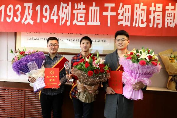 李泽坤同学则称:“志愿之举,任重道远”。2017年的一次献血时,志愿采集样本加入中华骨髓库成为一名捐献志愿者。没想到一年过后,我当初的无意之举却能在今天给一位患者带去生的希望,我很高兴也非常荣幸。1月17日将进行造血干细胞移植。无论是一次次的无偿献血,还是这次的造血干细胞捐献,在我看来,是等同的志愿之举。现在依旧有很多人对于捐献造血干细胞存在误解,认为会伤害身体或者认识停留在“抽骨髓”上,其实现在捐献造血干细胞已经采取了外周血采集的方式,抽骨髓仅限于近亲捐献。少去了疼痛,依旧能给一个患者,一个家庭新的希望。我想每一个有爱心的人都有一个共同的愿望,那就是我们不希望看到任何一个人被病魔击倒,不希望看到任何一个幸福的家庭遭受病魔带走亲人的巨大创伤。借此机会,我也呼吁更多的同学志愿加入中华骨髓库,加入志愿服务的行列,一起为社会,为人民作出贡献!感谢学校及中华骨髓库给我这次机会,感谢各位领导老师和同学们的关心帮助!同时,衷心祝愿患者能够早日康复!