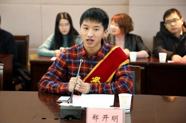 郑开明同学发言表示:我是一个普通的人,也是一个幸运的人,截至2018年,全国也只有八千例的捐献案例,在偌大的数据库中,我从初配到高配成功、体检合格,完成捐献,整个过程都是一帆风顺。在捐献的四个小时里,我看着血液从我的胳膊循环流动,经历短暂的头晕和全身的麻痹,再到摘下针管,看着血液流回体内,让我深感生命的奇妙。我很感谢老师、同学共同营造的包容、辩证、开放理解的环境,让我的前期思想准备倍感轻松;很感谢洋洋姐的建议通知,让我顺利踏上捐献的路途;感谢在捐献期间照料我的谷医生、三位阿姨叔叔还有几名同学,也很感谢自己能坚持每一个决定。我希望自己能做到《辛德勒的名单》里的那句话:凡救一命,即救全世界!