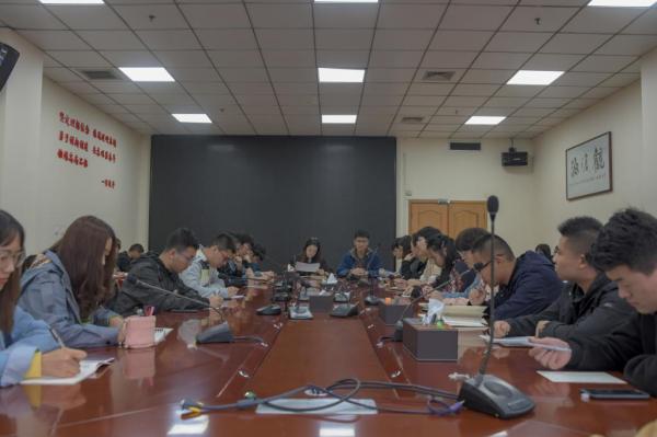 2019年10月9日中午12:40,长安大学大学生艺术团第十五届部门负责人第二次会议在长安文化艺术中心一楼会议室顺利召开。大学生艺术团秘书长张红、大学生艺术团主席团成员及各部门负责人出席本次会议。会议由团长田兆宁主持。