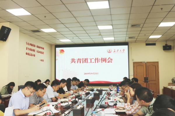 2019年9月3日下午,校团委在长安文化艺术中心一楼会议室召开共青团工作例会,安排部署本学期重点工作。校团委书记张永出席会议并讲话。校团委全体干部、各分团委(团总支)、各团工委书记、各校级学生组织主要负责人参加了本次会议。
