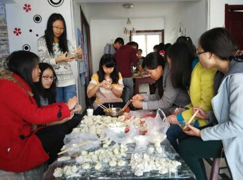 早上六点20分后勤组起床,由团支书李畅婧带领大家直奔便民市场购买当天所需食材,准备包饺子吃火锅所用食材。9:00,同学们陆陆续续到场,有人在剁馅,有人在调馅,有人在包饺子。10:00左右大家全部到齐,纷纷加入包饺子行列,有人包了鱼饺子,有人包了馄饨,也有人包了小包子等等等等,各式各样,大家玩的不亦乐乎,还互相讨教包饺子的方法。这时,另一部分人已经开始了涮火锅。饺子陆续出锅,火锅旁边也围满了人。大家热热闹闹的围了一桌,吃完了所有的饺子和火锅。期间,边吃边聊,交流自己身边最近发生的令人开心的事,让这个冬日也显得不再寒冷。结束聚餐后,同学们又进行了唱歌,玩游戏等一系列的活动。最后结束,同学们一起仔细认真地收拾完房间后满意离去。