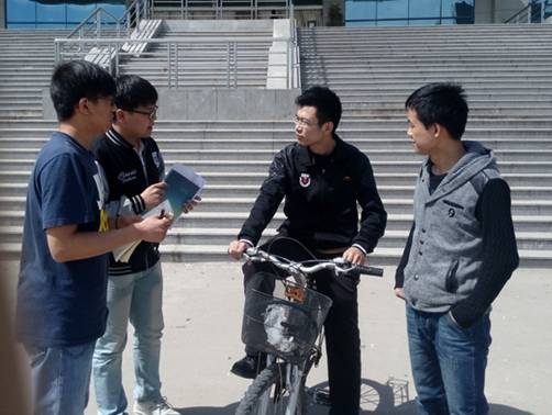 活动开始,由班长张宏介绍此次团日活动的主题并阐述活动的具体内容和要求,强调了活动主要分为室外调研和室内总结两大版块。紧接着各成员自行组队,每队三到四人,最后共分为十五个小组。选定调研主题后大家都兴致勃勃的走出教室,开始四处走访。两个小时后,室外调研结束,各小组陆续回到教室,针对各自调研问题准备简单的口述总结报告。准备就绪,各组发言人依次上台对各自的调研结果进行具体阐述,并发表自己的见解。活动结尾,班长张宏对此次活动进行总结,并对大家活动中的表现给予肯定。整个活动过程中,各成员都积极参与,分工明确,团结协作,以高度热情投入此次活动。