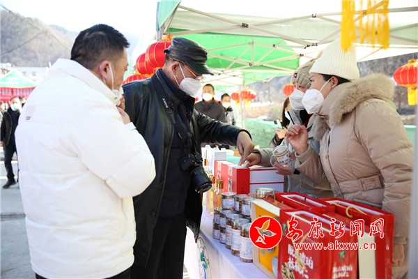 年货节现场设置了30余个展位,全县30余家农产品加工销售企业参加活动,汇聚了代表宁陕地方特色的腊肉、香菇、木耳、核桃油等100余种农副产品,充分展示了宁陕丰富的名优特产农产品资源及发展成果,为全县人民送上了本地名优农产品年货大礼包。除了线下采购外,现场还有主播直播带货,网友可以在抖音等平台,通过线上来采购宁陕山珍。